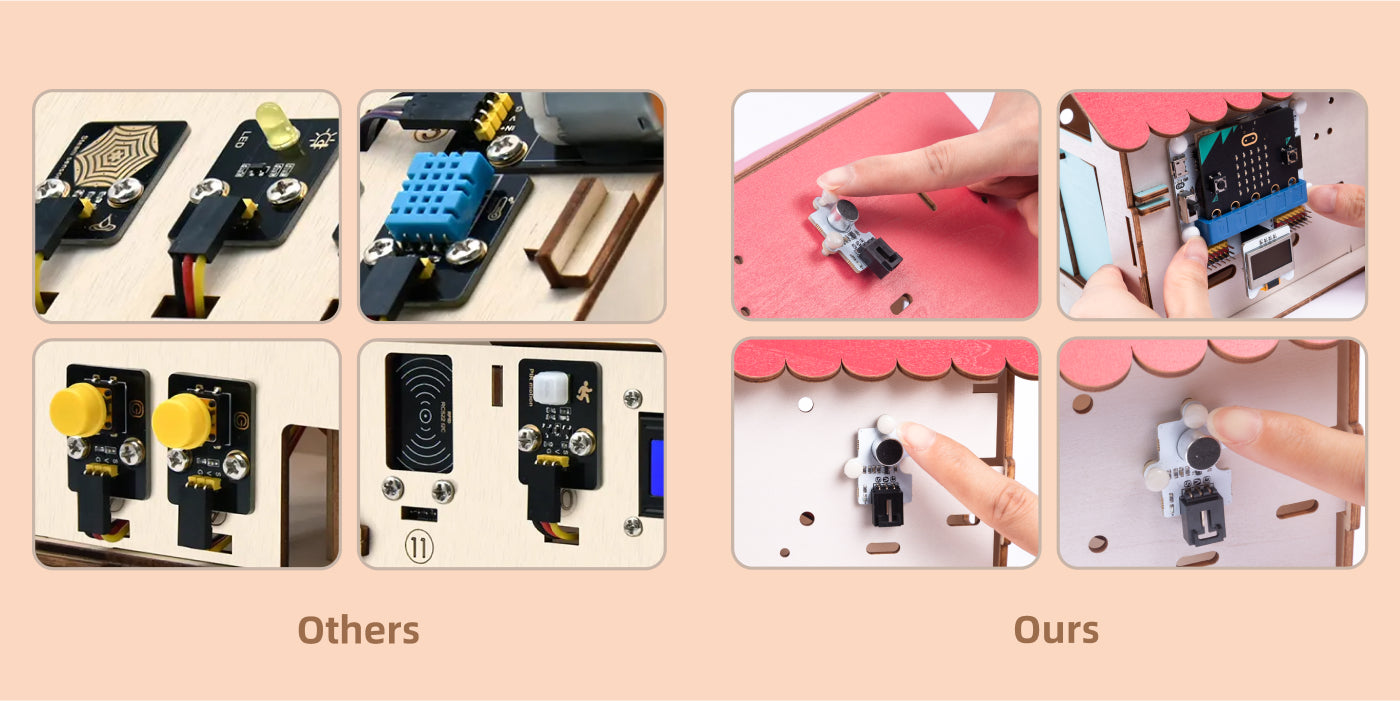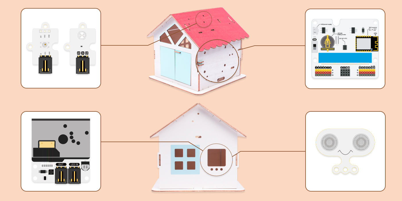 ELECFREAKS Smart Home Material Pack has reserved sensor holes for users to install sensors more conveniently to show more interesting projects.
