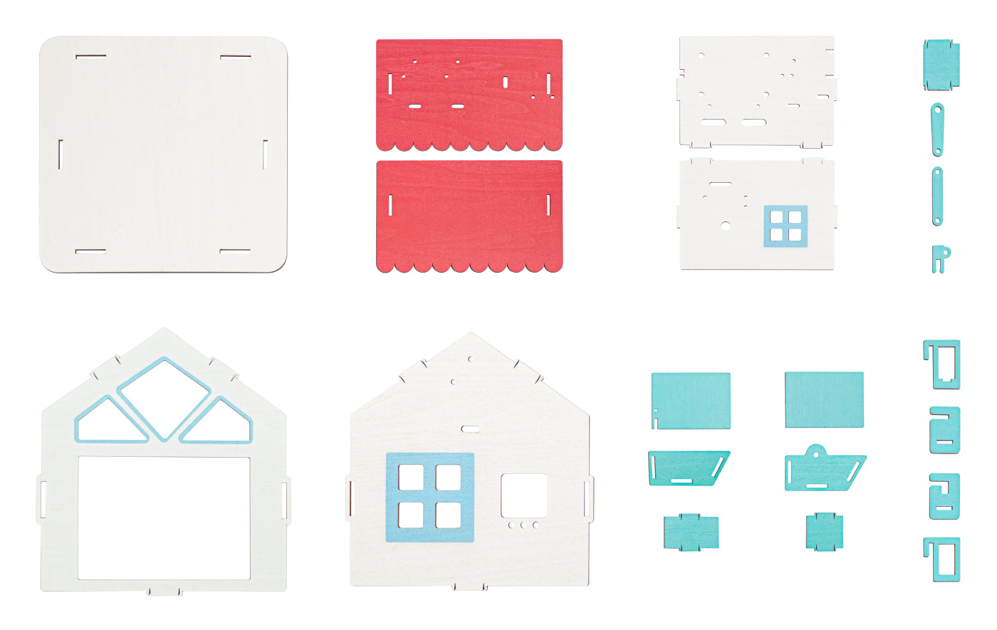 The ELECFREAKS Smart Home Material Pack is a customized wooden accessory pack for Octopus sensors. It is designed with fixing holes reserved for IOT:bit, Sensor:bit, Servo, and Octopus sensors, which enables us to show better results when building cases.